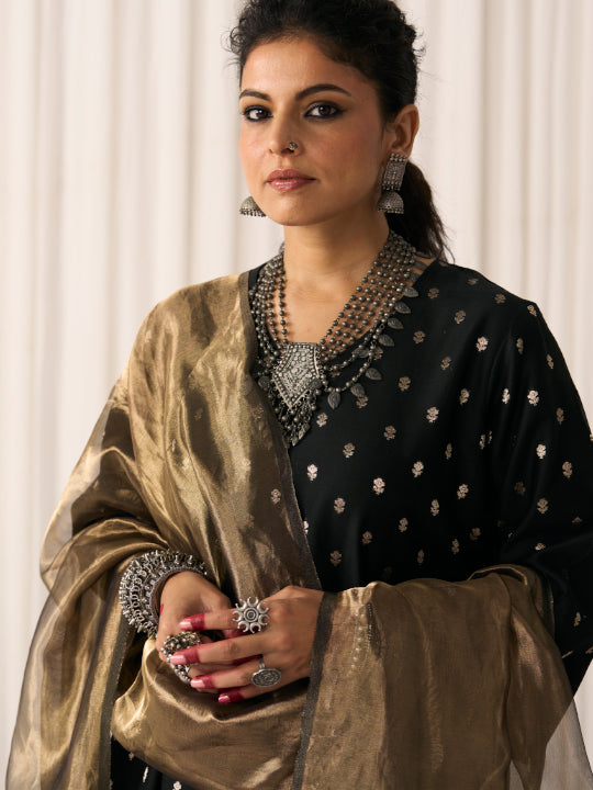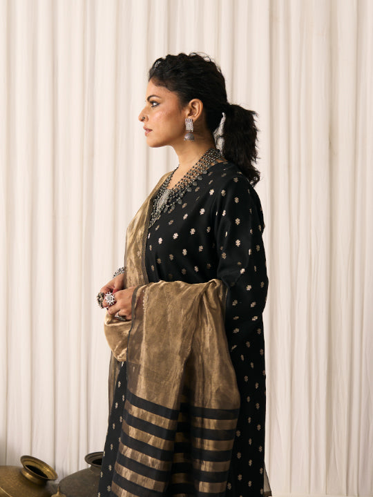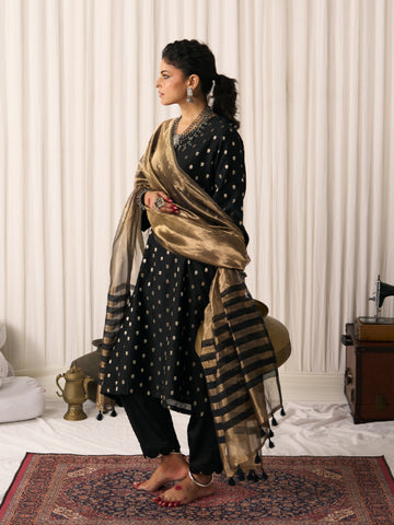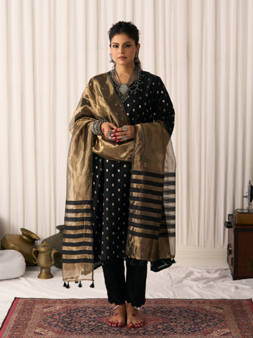 Colour: Gold (with black chanderi stripes and tassels on the edges)