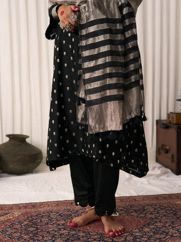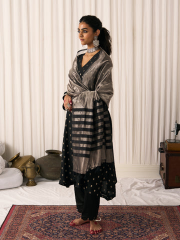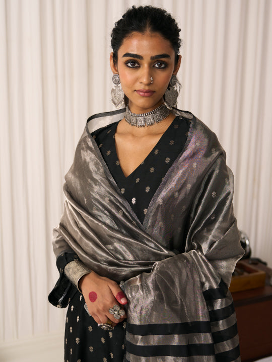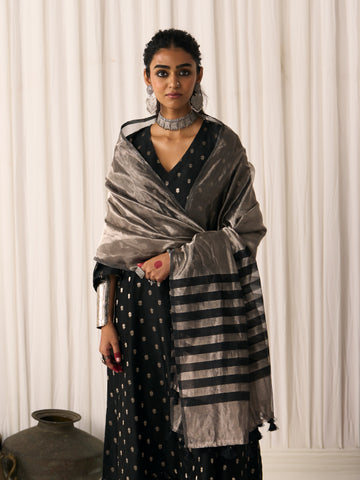 Colour: Silver (with black chanderi stripes and tassels on the edges)