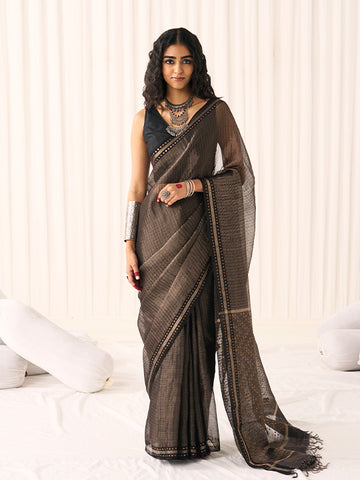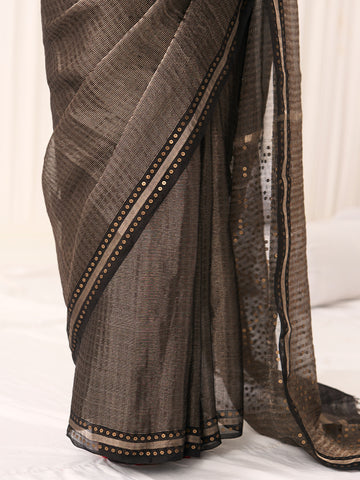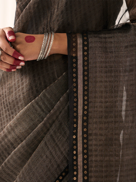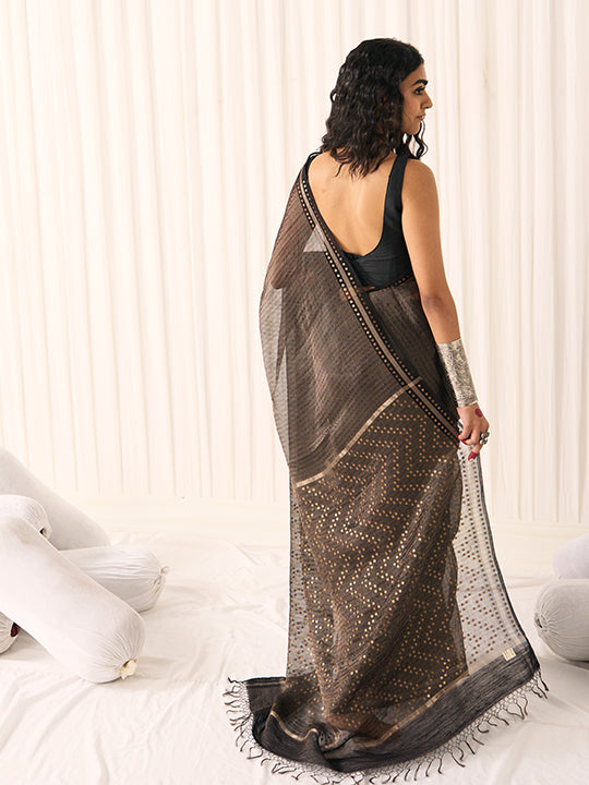 Colour: Black (with gold tissue striped base, woven sequins border and chevron pattern on the pallu)